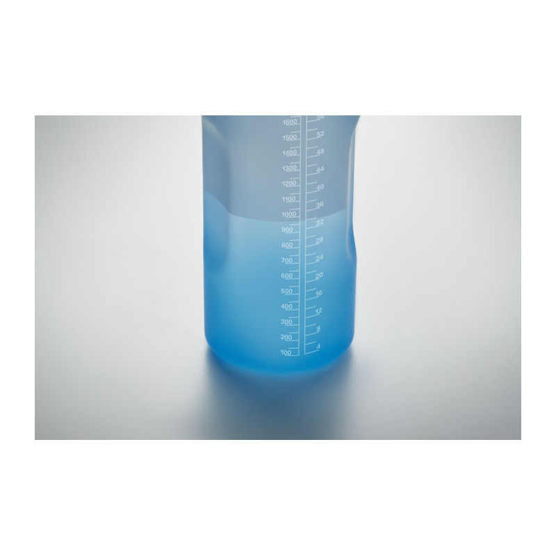 Garrafa de água motivacional de 2 litros em RPET (plástico reciclado). Com tampa flip-top, palhinha e pega. O brinde sustentável ideal para fitness e bem-estar.