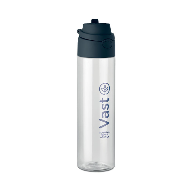 Garrafa de 700ml em RPET com alça prática. São brindes publicitários leves e resistentes, ideais para o ginásio ou escritório, promovendo a sustentabilidade da sua marca em qualquer lugar.