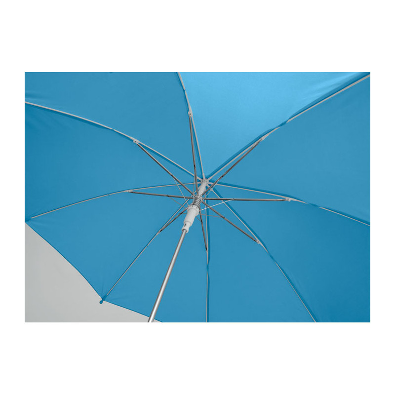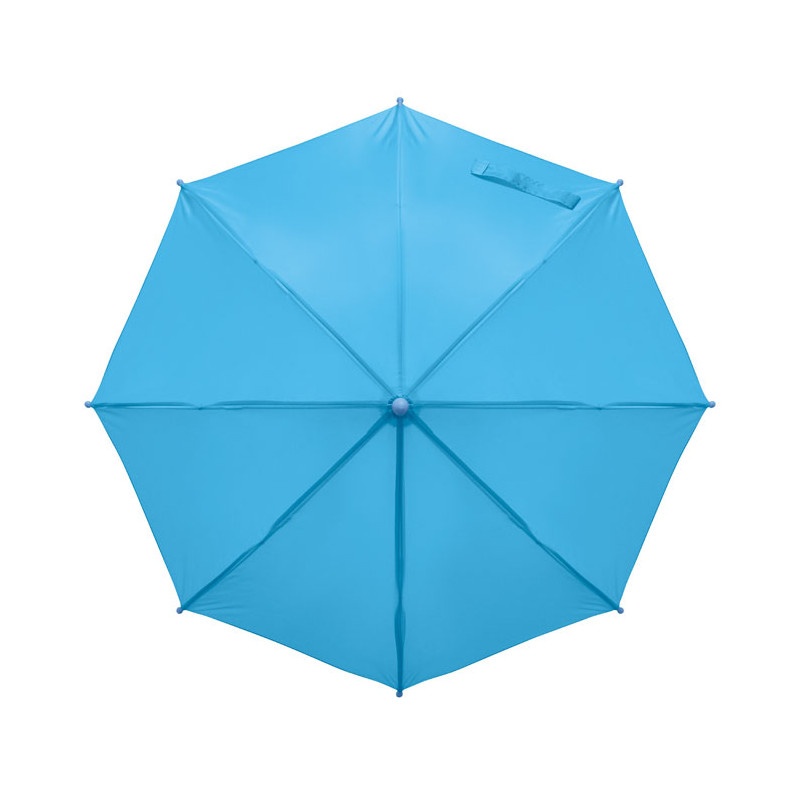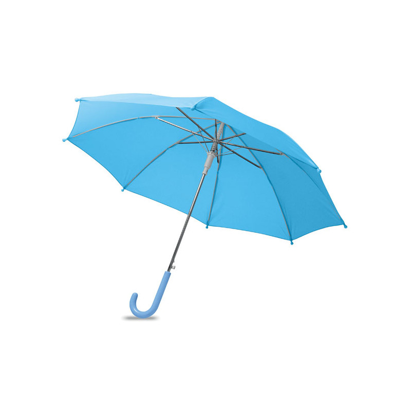 Guarda-chuva de abertura automática para crianças de 18 polegadas. Haste e nervuras em metal, poliéster 190T. Pega, pontas e topo em PP.