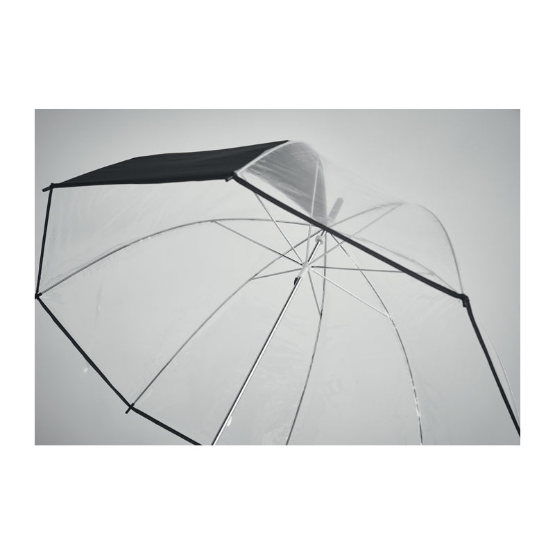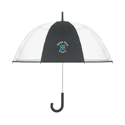 Guarda-chuva POE reto de 23"" com rebordo em PG e 1 painel em poliéster para área de impressão. Abertura manual. Fibra de vidro, nervuras e armação. Haste cromada com pontas de plástico. Pega
