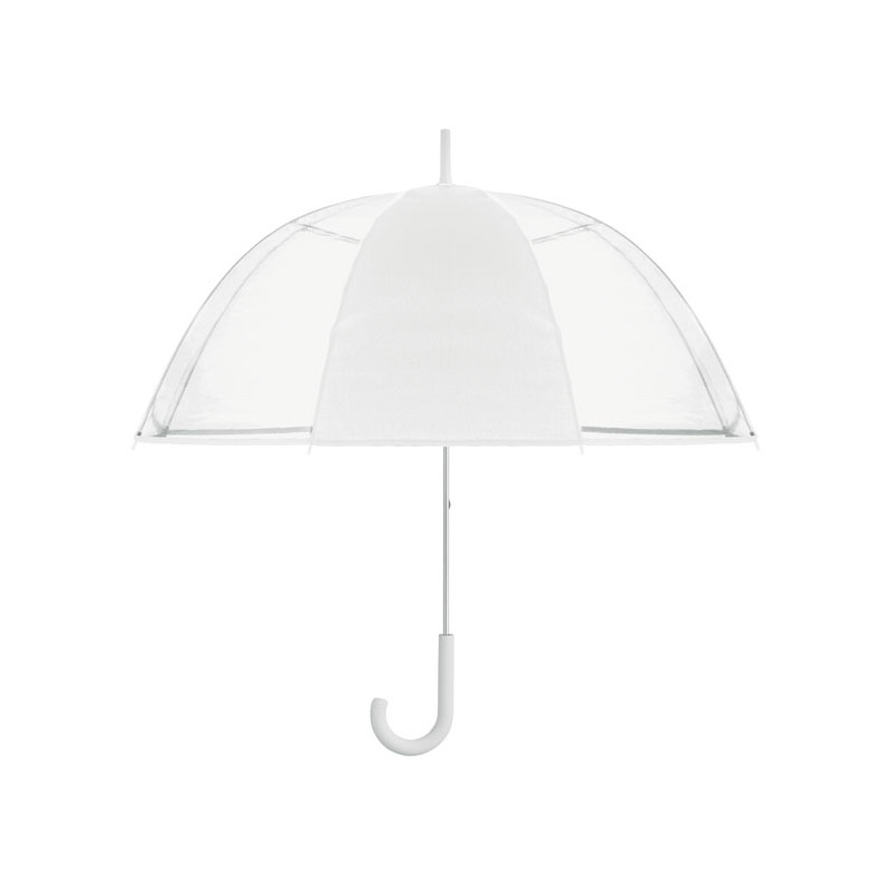 Guarda-chuva transparente de 23" em POE com painel de impressão em poliéster. O brinde personalizado ideal para eventos e marcas que procuram visibilidade moderna.