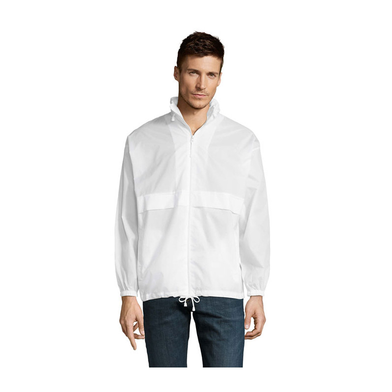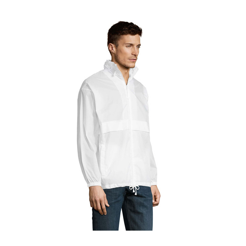 SOL'S SURF; CORTA-VENTO UNISSEX REPELENTE DE ÁGUA; 100% poliamida POLIAMIDA 210T; Abertura com fecho de correr; Capuz com cordão dobrado na gola; 2 bolsos exteriores com fecho de correr; Sistema de dobra 'na bolsa' com elásticos na cintura; Punhos elásticos; Ilhós de ventilação.