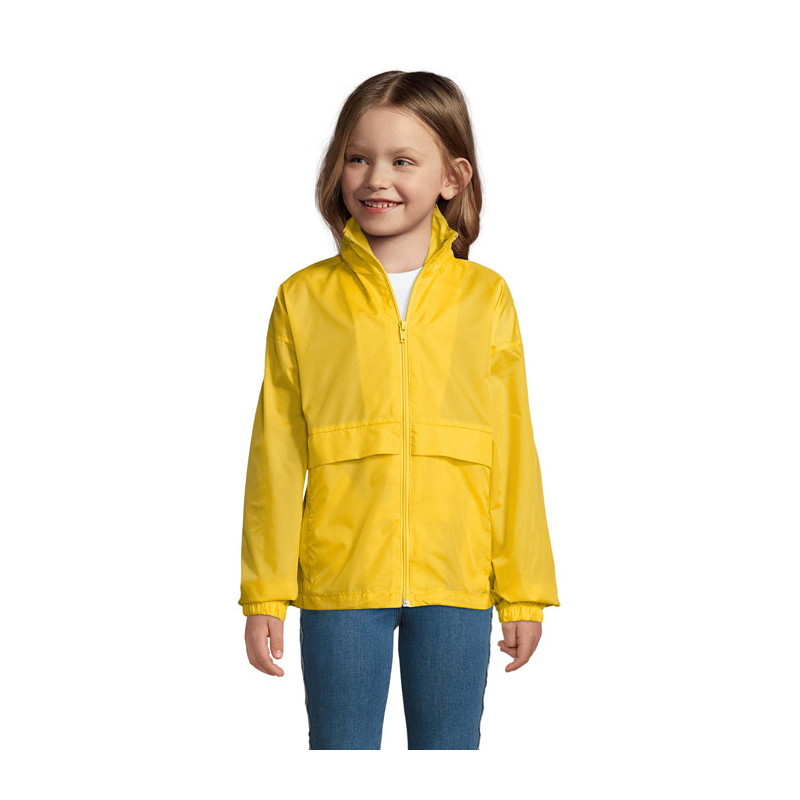 "SOL'S SURF Corta-vento Criança r 210g/m², À prova d'água, abertura com zíper, capuz dobrado no pescoço, 2 bolsos externos fechados com zíper, sistema de dobra ""in bag"" com elásticos atados na cintura, aberturas de ventilação, cordão interno preso na base. Tamanhos - 5-6 anos: 105-116cm (XL), 7-8 anos: 117-128cm (XXL), 9-11 anos: 129-141cm (3XL), 12-14 anos: 142-164cm (4XL), 15-16 anos: 165-176 cm (5XL)"