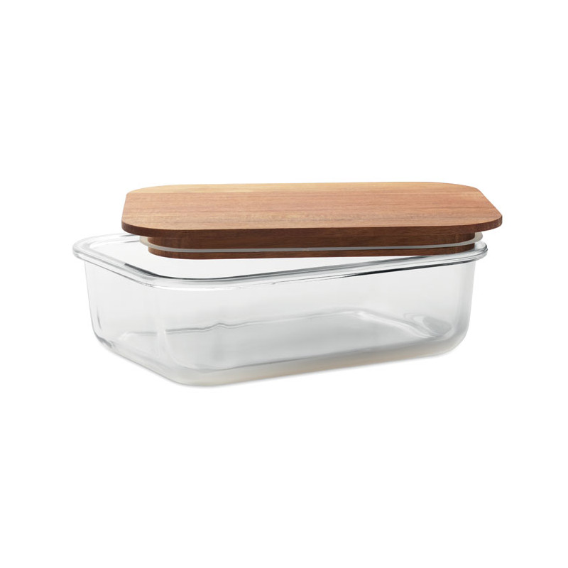 Lancheira em vidro com tampa em madeira de acácia e fecho com elástico RPET. Capacidade: 800 ml FSC®-certified | FSC 100%, W16.3, FSC-C213206