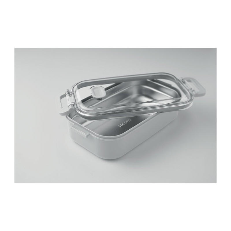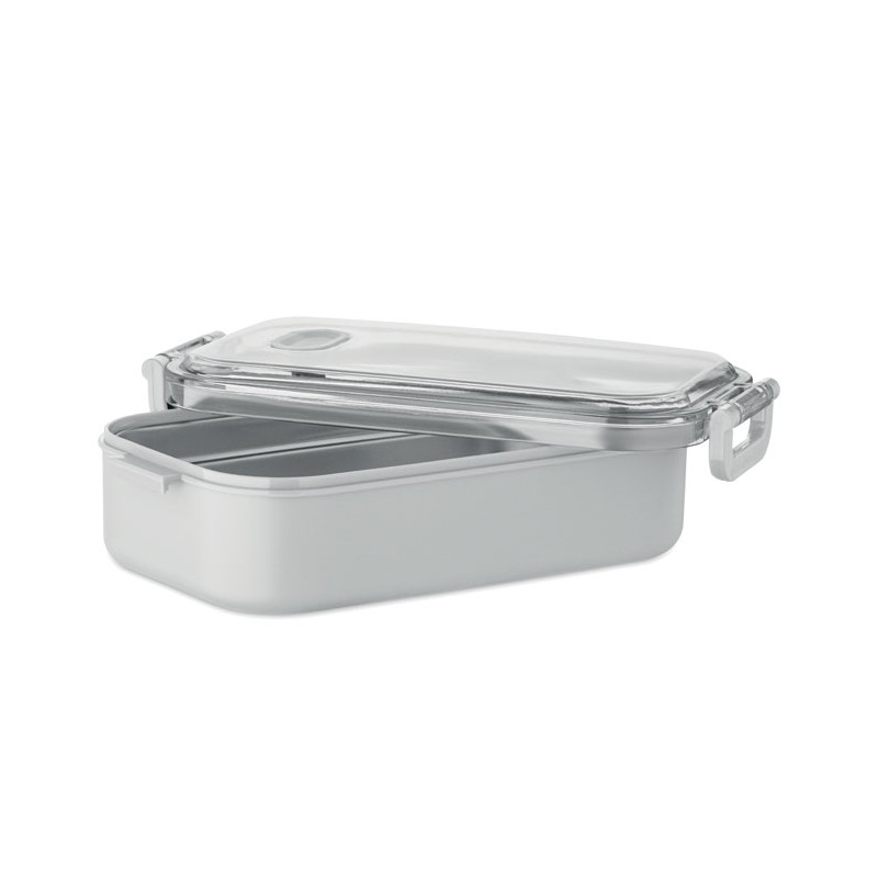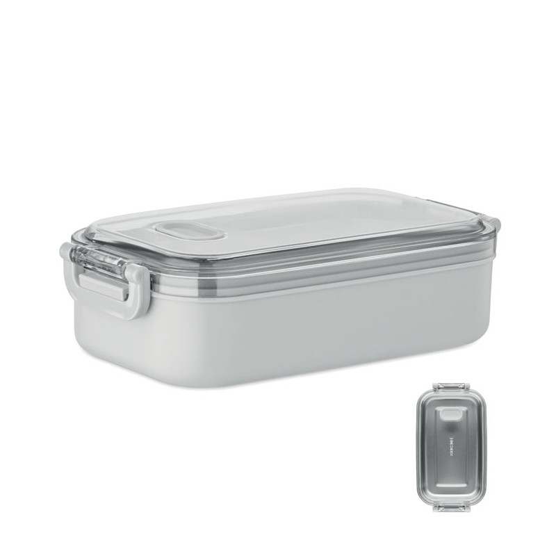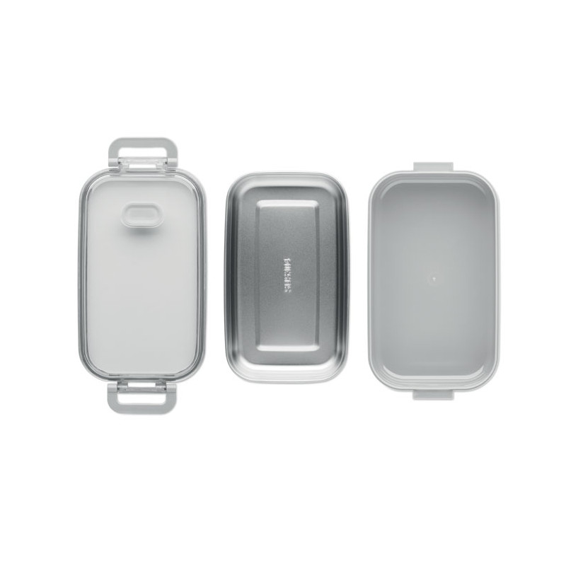 Lancheira feita de PP com uma camada interior adicional de aço inoxidável reciclado. Tampa hermética em AS que mantém os alimentos frescos e seguros. Capacidade 750 ml e 650 ml com tabuleiro.