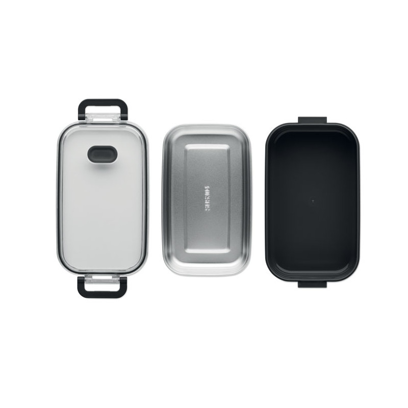 Lancheira feita de PP com uma camada interior adicional de aço inoxidável reciclado. Tampa hermética em AS que mantém os alimentos frescos e seguros. Capacidade 750 ml e 650 ml com tabuleiro.