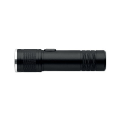 Lanterna de luz COB recarregável e expansível em alumínio reciclado. 100 lúmenes com 3 regulações de luz e função de zoom. Bateria recarregável de 800 mAh incorporada. Cabo de carregamento incluído.