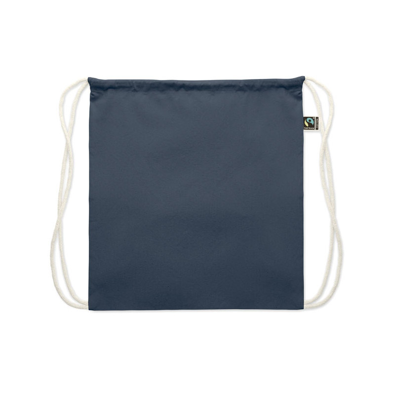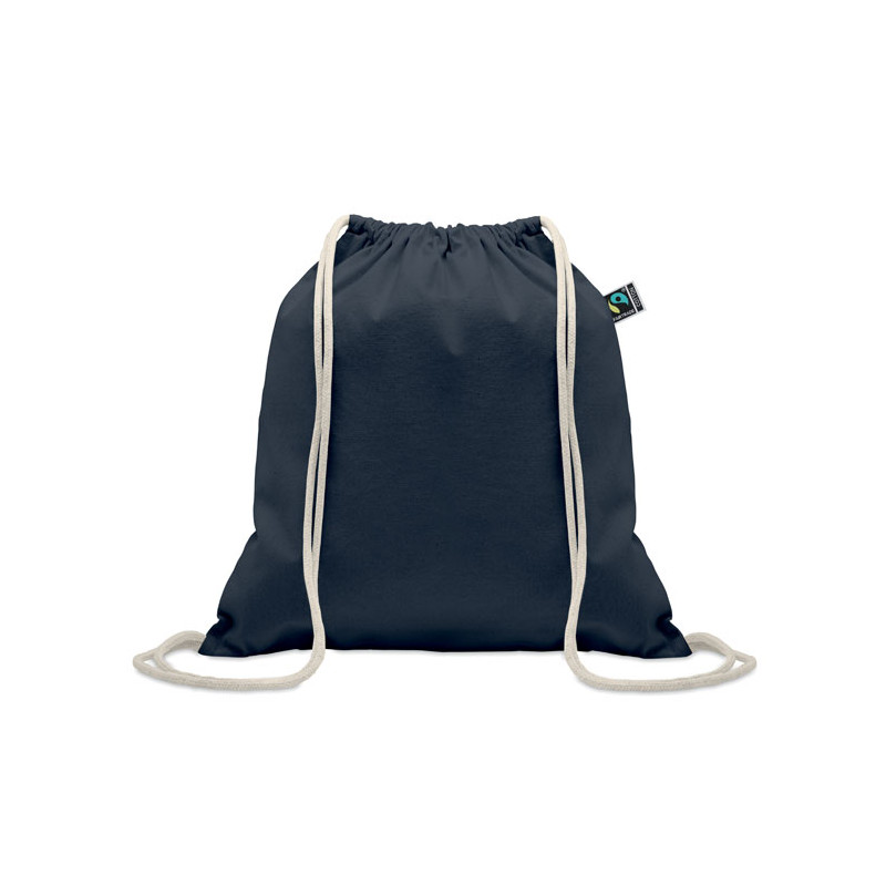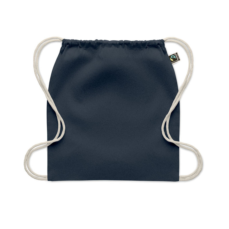 Sacos personalizados com cordão em algodão Fairtrade. Brindes publicitários duradouros e sustentáveis, ideais para eventos e feiras com uma comunicação ética e de qualidade.