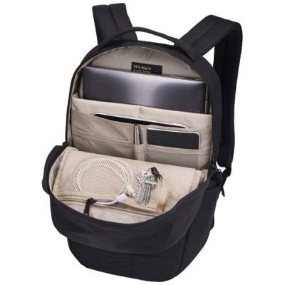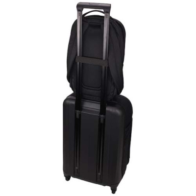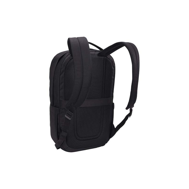 A mochila para portátis de 14" "Case Logic Invigo" é uma mochila simples e refinada feita de materiais reciclados com pormenores organizacionais bem pensados. É feita com um exterior de poliéster 600D 100 % reciclado e um forro interior de poliéster 150D. O compartimento acolchoado para portáteis protege um portátil de 14'' e a capa para tablets pode acomodar um tablet de 10,9''. Dentro da mochila há bolsos para guardar pequenos acessórios e um bolso de malha com fecho de correr que oferece armazenamento seguro adicional para pequenos itens, como chaves. No exterior da mochila há um bolso de segurança oculto no painel traseiro que mantém itens vitais como passaporte ou carteira escondidos, mas sempre à mão. O bolso frontal permite armazenamento rápido de itens quando está em movimento e os 2 bolsos laterais são adequados para garrafas de água ou guarda-chuvas. A mochila também possui uma alça de passagem para prender a mochila à bagagem com rodas para viajar sem esforço.