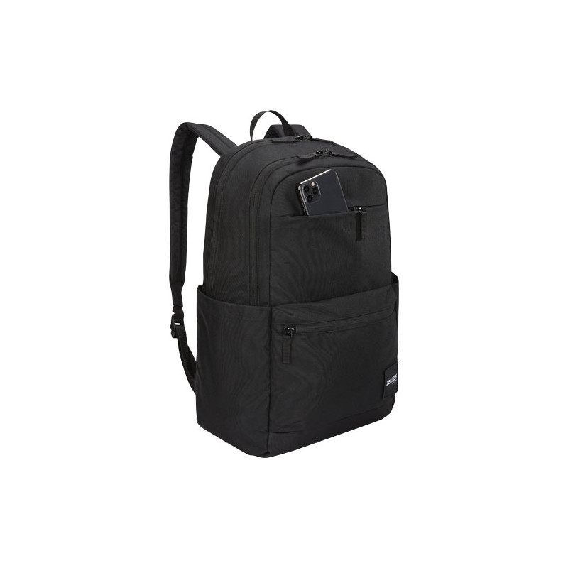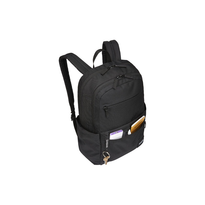 A mochila "Case Logic Uplink" tem 26 litros de capacidade de armazenamento, incluindo dois compartimentos grandes, bolsos frontais duplos e muitos compartimentos de organização. A mochila é feita de material 100 % poliéster 600D reciclado combinado com uma base acolchoada e durável de poliéster 1200D 100 % reciclado. As alças contornadas e o painel traseiro totalmente acolchoado garantem uma utilização confortável. Apresentando um compartimento acolchoado para portáteis de 15,6", uma capa para tablets de 10", dois bolsos laterais grandes para uma garrafa de água ou outros pequenos objetos e um bolso frontal de organização para pequenos eletrónicos, canetas e chaves. O espaçoso compartimento principal foi projetado para acomodar livros e pastas e um compartimento secundário para cadernos, auriculares e itens pessoais adicionais, além de um pequeno bolso de privacidade com fecho de correr. O bolso frontal de acesso rápido consegue armazenar um telefone e pequenos acessórios.