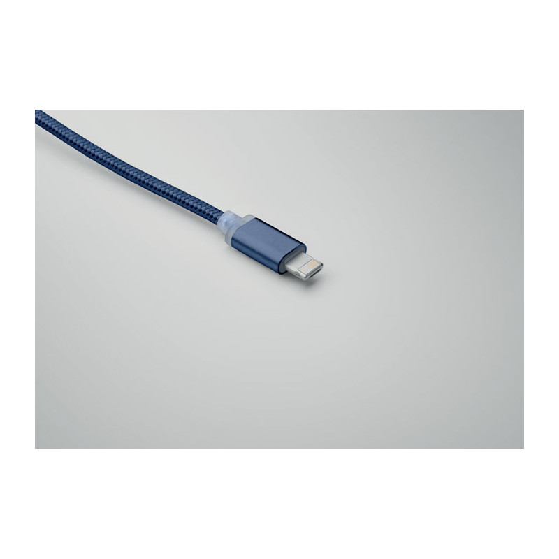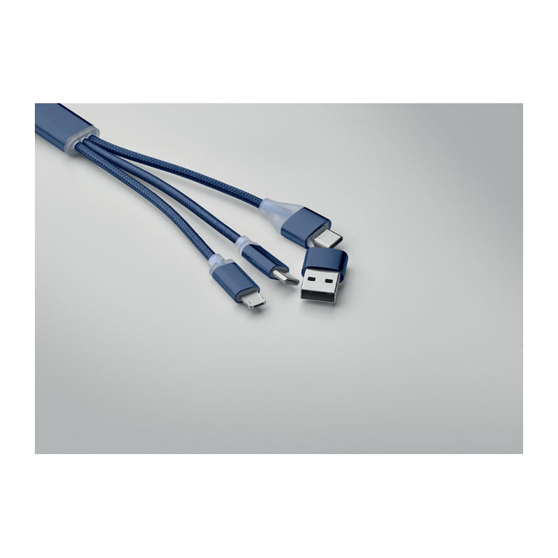Porta-chaves com cabo de carregamento com entrada 2-em-1 tipo C e tipo A e micro-B (ficha 2-em-1) e saída tipo C.