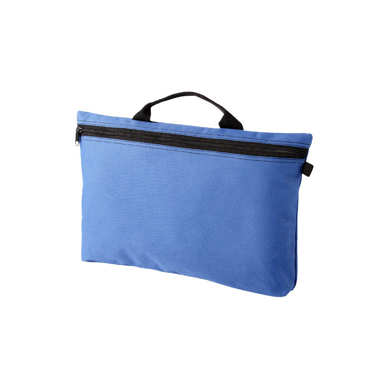 O Pasta de conferência Orlando é um produto que, graças à grande área de impressão, pode facilmente dar exposição em qualquer conferência, feira ou outro evento. Orlando é feito de poliéster 600D forte e versátil, fecha e abre com um fecho de correr e tem um conveniente laço de caneta no exterior da mala. Oferece espaço suficiente para armazenar papéis até ao tamanho A4 e, além disso, o saco é fácil de transportar utilizando a pega de transporte.
