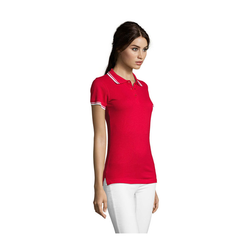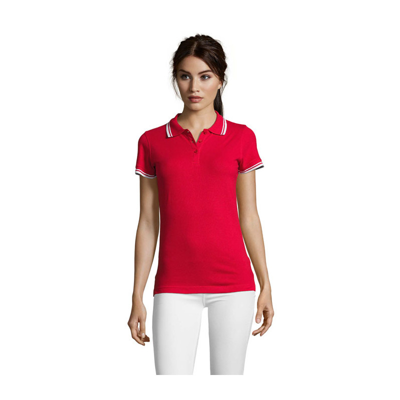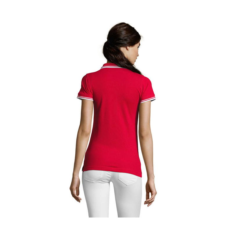 SOL'S PASADENA women polo shirt 200g.Corte e estilo moderno. Vasta gama de cores. Destinado a todos os mercados. Canelado 1x1 na gola e no acabamento das mangas. Fita de reforço no colarinho. Manga curta. Contraste bicolor na gola e no acabamento das mangas. Carcela de 3 botões à cor. Corte justo. Cortado e cosido. Aberturas laterais. Botão suplente na costura lateral interior. Fabric details: 100% algodão ''Ringspun''. OEKO-TEX®. Only Sold with Print.