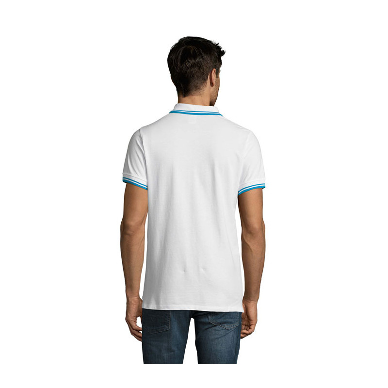 SOL'S PASADENA Polo SENHOR 200g / m². Corte e estilo modernos, ampla gama de cores, destinados a qualquer tipo de mercado, 100% algodão fiado em argola, canelado 1x1 nos punhos e punhos, costuras reforçadas no pescoço, mangas curtas, gola e punhos riscados em contraste, 3 botões à mesma cor, slim fit, costuras laterais, aberturas laterais, botão suplente inserido na costura interna.