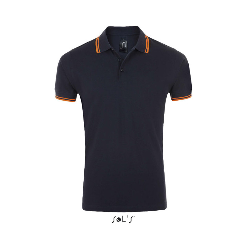 SOL'S PASADENA men polo shirt 200g.Corte e estilo moderno. Vasta gama de cores. Destinado a todos os mercados Canelado 1x1 na gola e no acabamento das mangas. Fita de reforço no colarinho. Manga curta. Contraste bicolor na gola e no acabamento das mangas. Carcela de 3 botões à cor. Corte justo. Cortado e cosido. Aberturas laterais. Botão suplente na costura lateral interior. Fabric details: 100% algodão ''Ringspun''. OEKO-TEX®. Only Sold with Print.