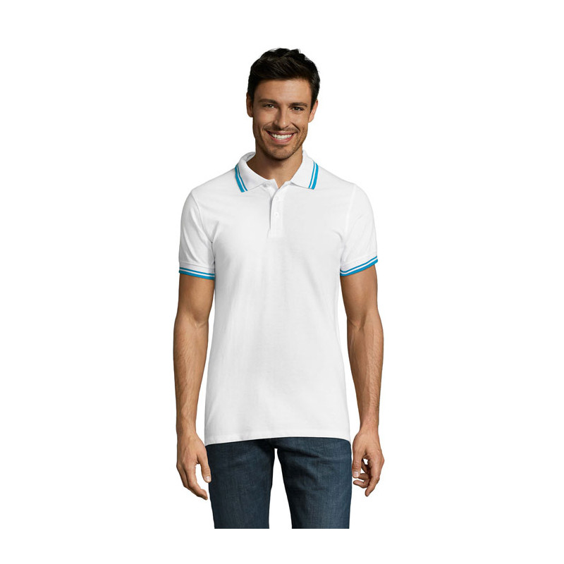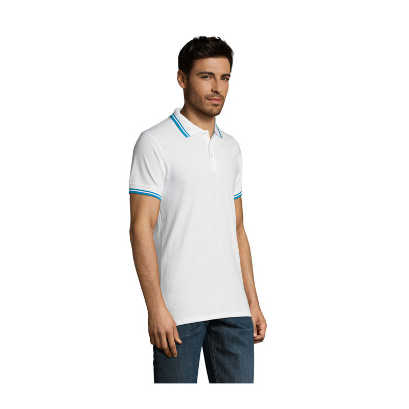 SOL'S PASADENA men polo shirt 200g.Corte e estilo moderno. Vasta gama de cores. Destinado a todos os mercados Canelado 1x1 na gola e no acabamento das mangas. Fita de reforço no colarinho. Manga curta. Contraste bicolor na gola e no acabamento das mangas. Carcela de 3 botões à cor. Corte justo. Cortado e cosido. Aberturas laterais. Botão suplente na costura lateral interior. Fabric details: 100% algodão ''Ringspun''. OEKO-TEX®. Only Sold with Print.