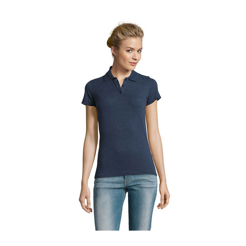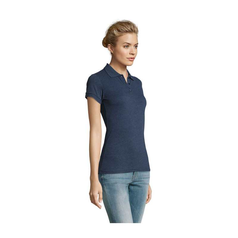 SOL'S PERFECT Pólo SENHORA 180g/m², piqué 180, 100% algodão penteado ringpun, canelado 1x1 na gola e parte inferior das mangas, fita de reforço na gola, mangas curtas, 2 botões perolados na mesma cor de plaquetas, botão suplente inserido no interior, costuras laterais.