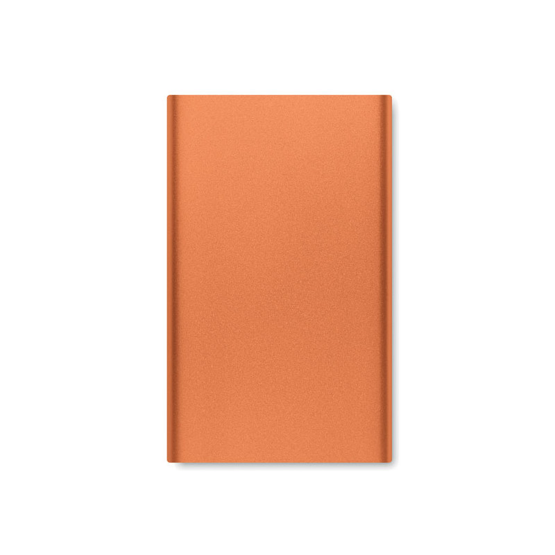 Power Bank com capacidade de 4000 mAh em alumínio. Corrente de saída DC5V/2A. Inclui luz indicativa e cabo USB com tipo C.