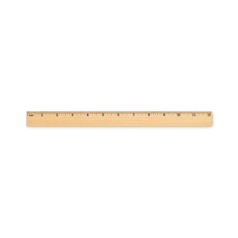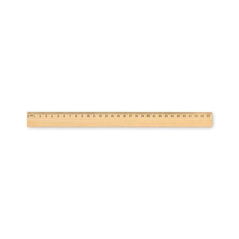 Régua em madeira de pinho de 30 cm com escala em centímetros de um lado e em polegadas do outro.