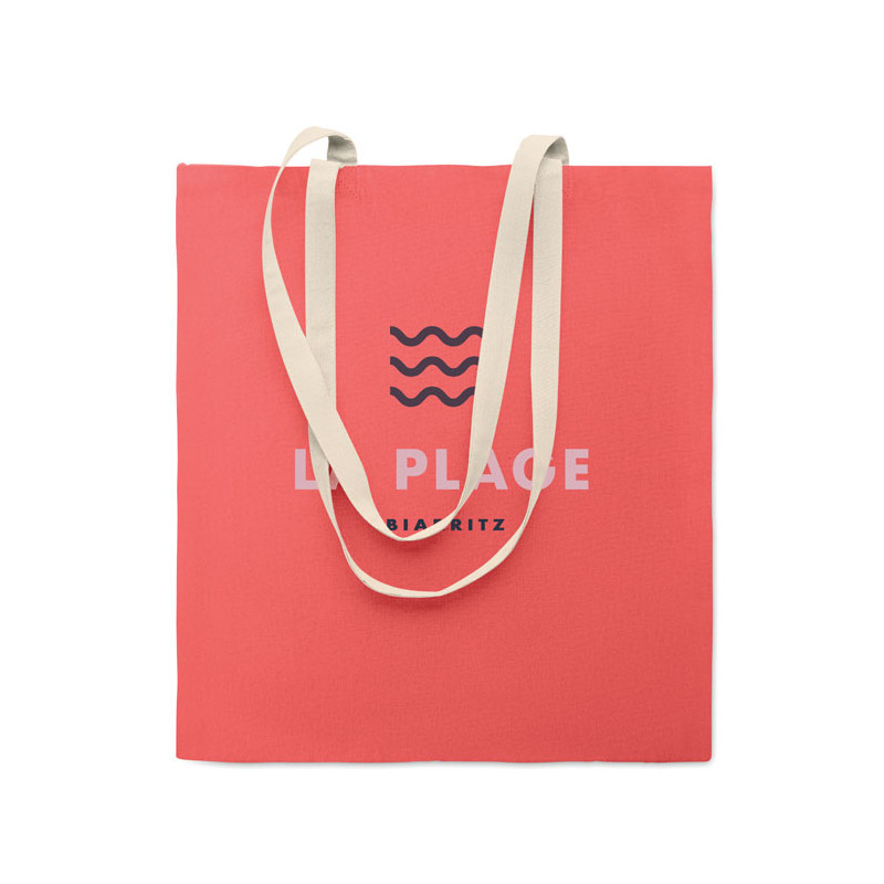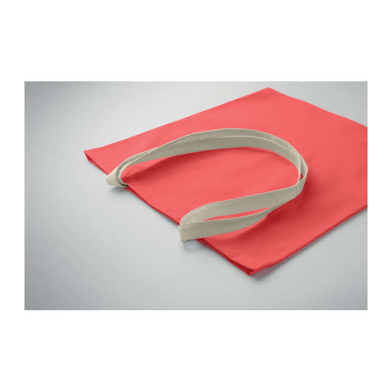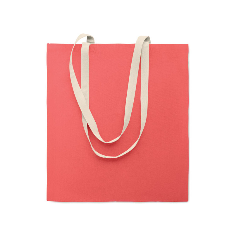 Saco de compras em algodão com pegas compridas em cor natural e corpo em contraste. 140 gr/m².