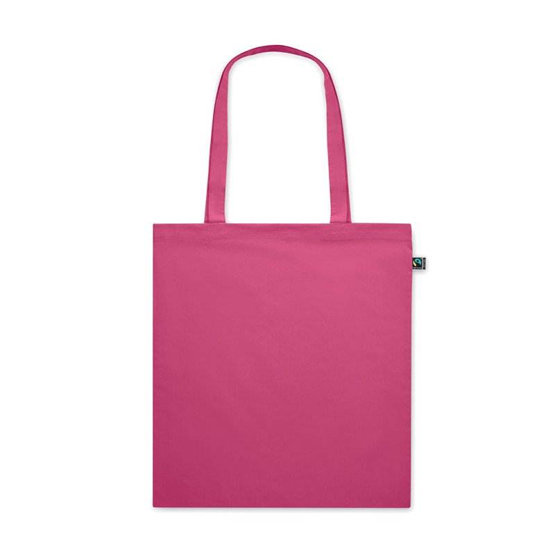 Sacos de compras personalizados em algodão Fairtrade com alças longas. O brinde publicitário ideal para aumentar a visibilidade da sua marca em congressos e feiras.