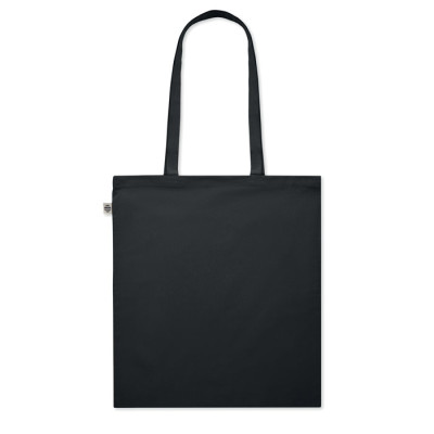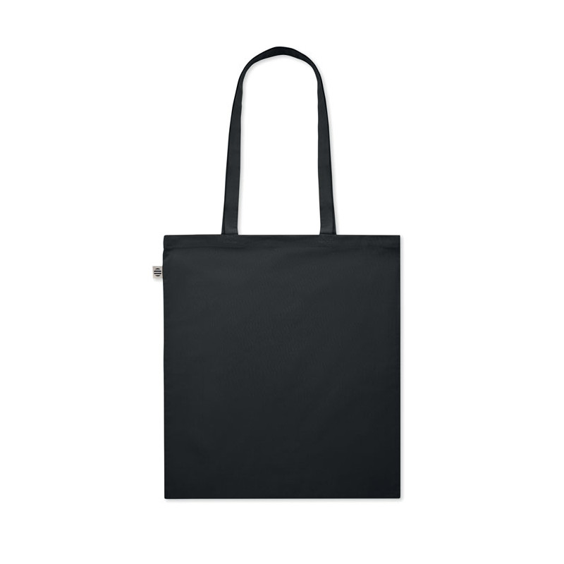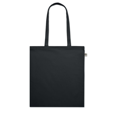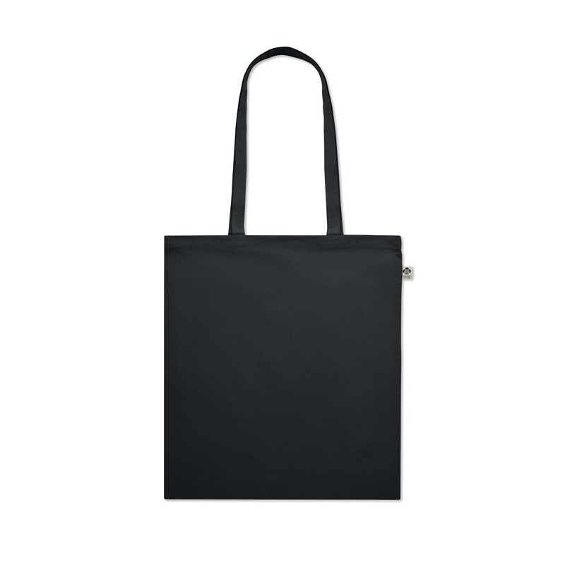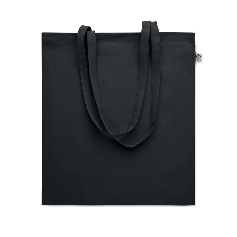 Saco de compras de algodão orgânico com asas longas. 180 gr/m². Produzido sob uma norma certificada para a utilização de substâncias nocivas nos têxteis.
