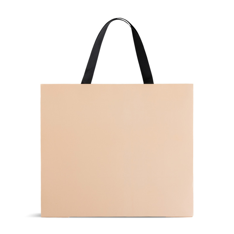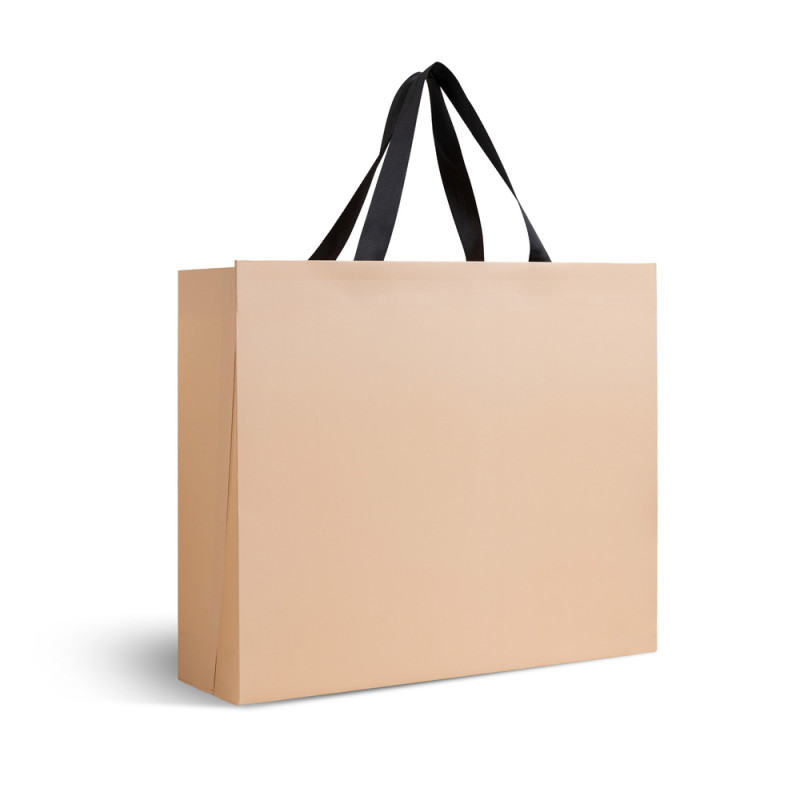 Sacos de papel personalizados de grande formato com acabamento mate. Impressione os seus clientes com uma embalagem premium e alças de tecido elegantes.