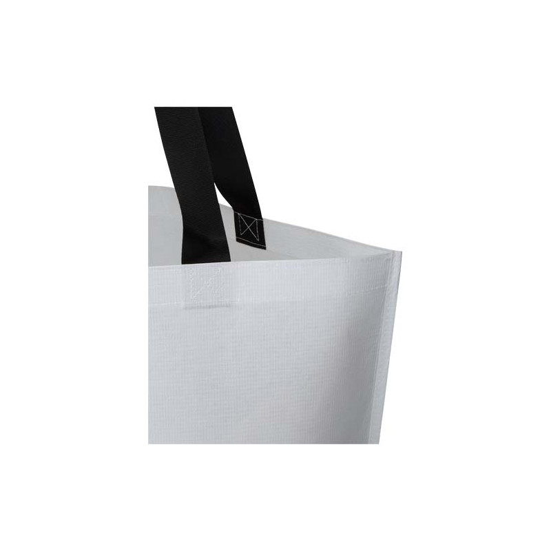 O saco de grandes dimensões com fundo duplo laminado "Duo" é feito de RPET com certificação GRS de 150 g/m2 e oferece uma maior durabilidade e resistência à água quando necessário. Possui um compartimento principal aberto e espaçoso, pegas resistentes reforçadas e um fundo largo para uma capacidade acrescentada. Concebido para transportar até 15 kg, é uma opção elegante e confiável para transportar compras, passeios na praia, piqueniques ou viagens de fim de semana. Capacidade volumétrica: 30 litros.