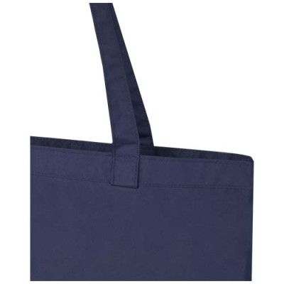 O "Kai" saco circular reciclado GRS – o maior impacto positivo em termos de desempenho ambiental. Uma exploração mais sustentável começa com um design melhor – um design com menos impacto no ambiente. A redução média total do impacto já obtida com 1 saco é a seguinte: 7% de pegada de carbono, 42% de energia e 47% de custos ecológicos. Feita em nylon reciclado certificado 200T GRS, o "Kai" é um saco clássico e atemporal, adequado para uso diário. O local designado para impressão é no bolso que também funciona como bolsa. O saco pode ser devolvido por meio de um programa de devolução com um código QR que fornece informações adicionais.