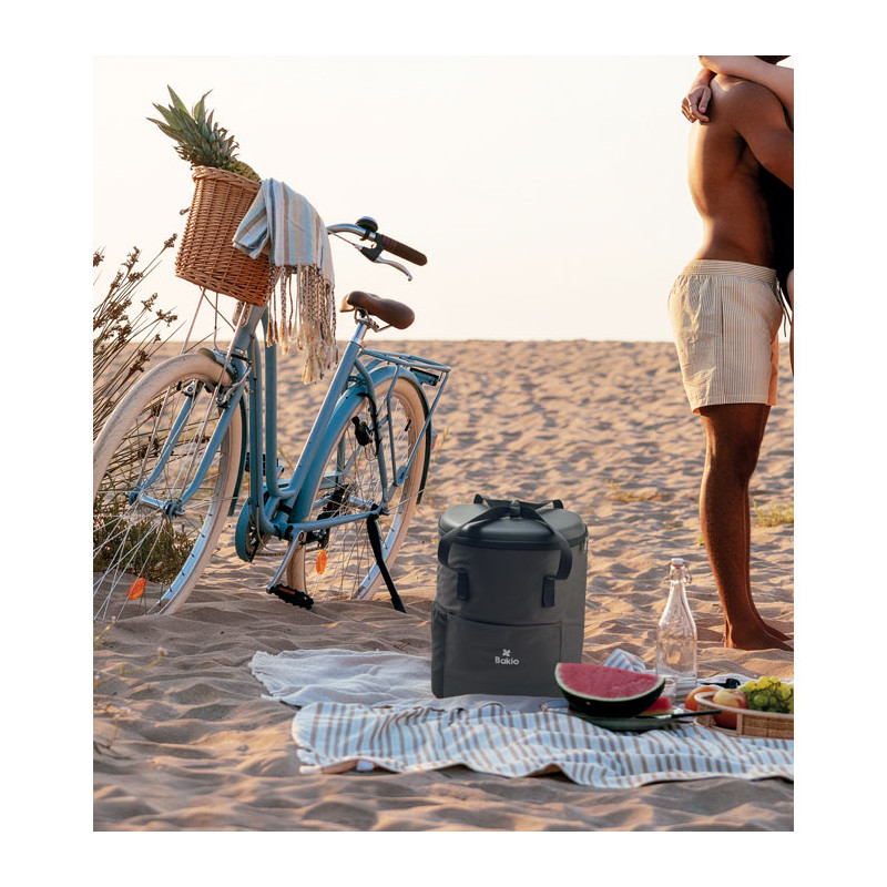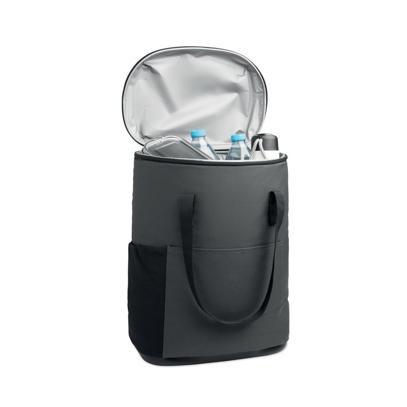 Mochila térmica em RPET 600D com 20L de capacidade e acabamento repelente de água. A escolha sustentável para criar um brinde personalizado útil e de alta qualidade.