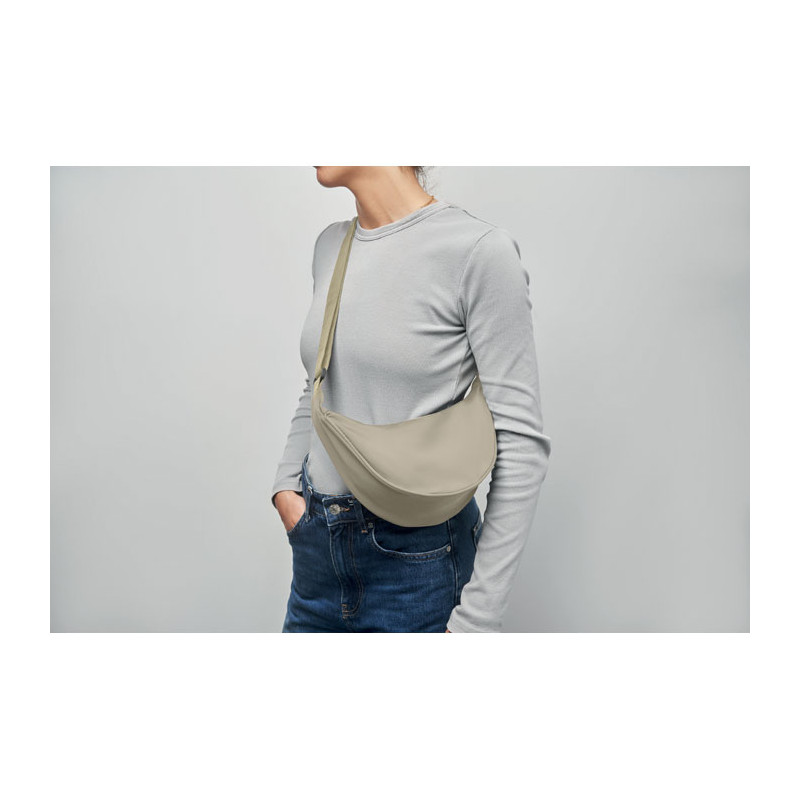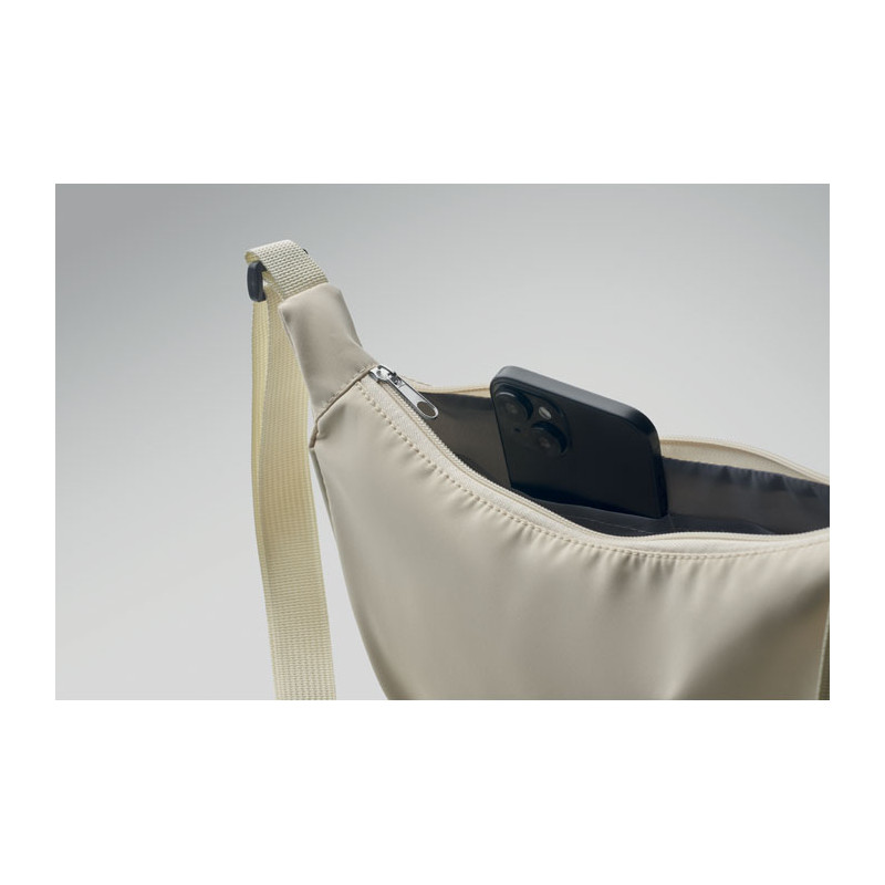 Mala tipo bandolera em forma de meia-lua ou cruzada Oxford 400D e forro RPET 210D. Um bolso principal com fecho e 2 bolsos interiores.
