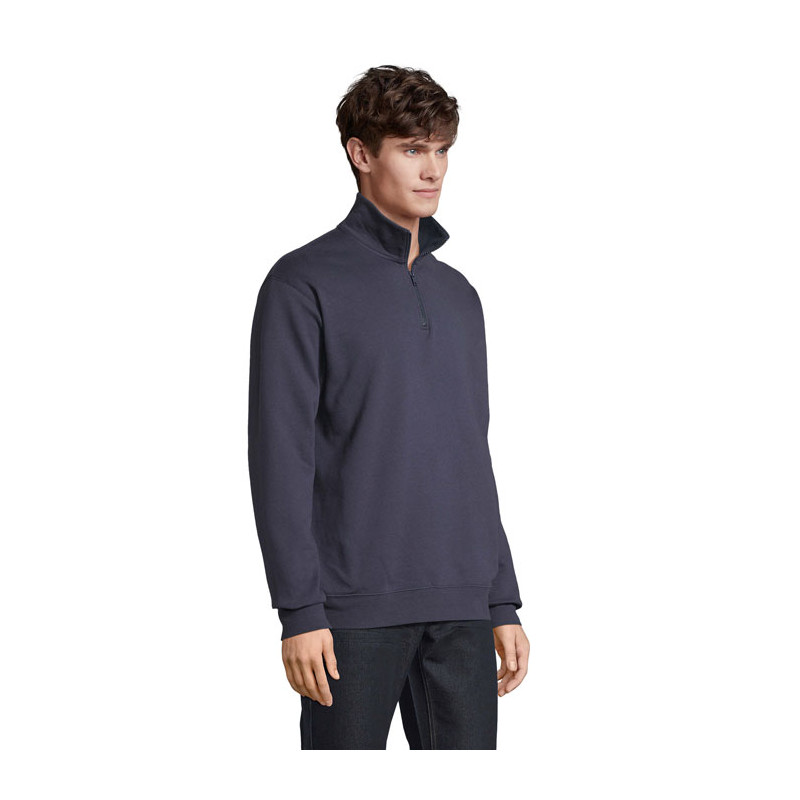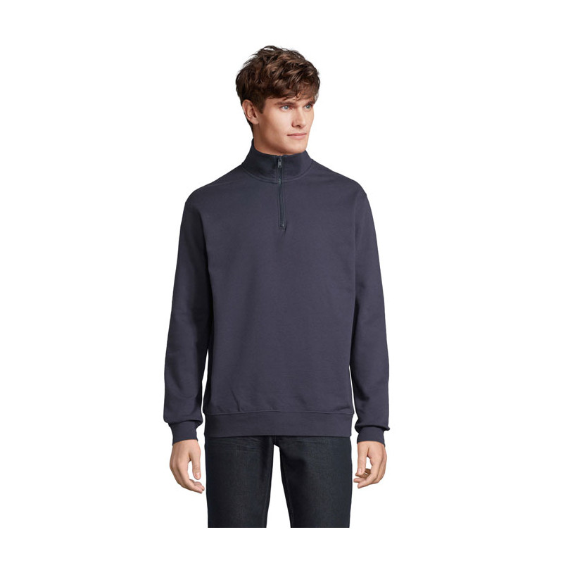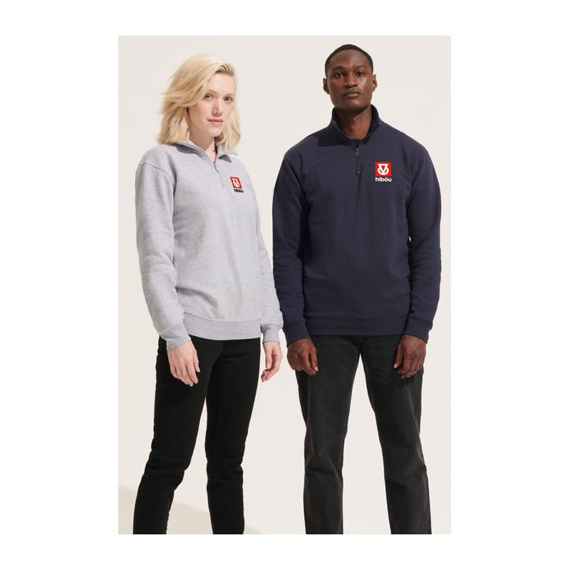 Sweatshirt personalizada em algodão e poliéster reciclado com fecho. Design urbano e detalhes cuidados, ideal para fidelizar clientes e equipas com estilo.