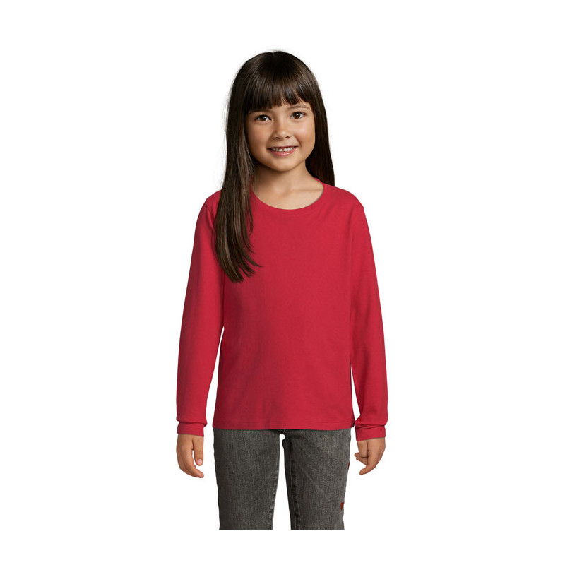 SOL'S IMPERIAL, t-shirt infantil 190 g. Gola com fita. Gola canelada com elastano. Gola redonda. Mangas compridas. Cortada e costurada. Detalhes do tecido: 100% algodão semi-penteado ringspun. Para saber mais sobre a correspondência de tamanhos, consulte a tabela de tamanhos na secção de documentação do produto