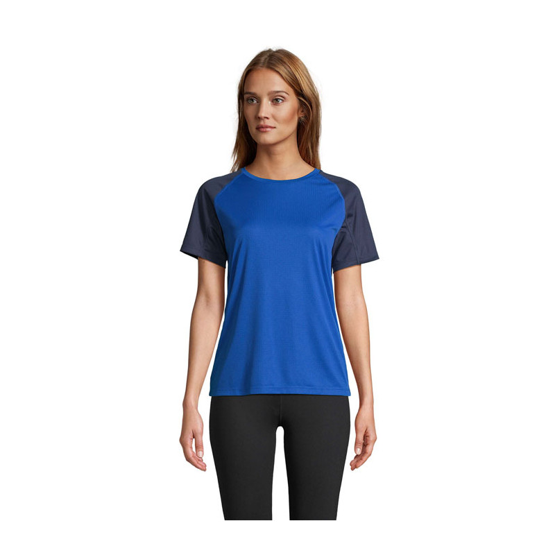 SOL'S VORTEX MULHERES, T-SHIRT COM MANGA RAGLAN, Malha com efeito Ripstop - 100% poliéster reciclado respirável, T-shirt com manga raglan, Corte justo, Gola redonda em tecido próprio. Para saber os tamanhos correspondentes, consulte a tabela de tamanhos