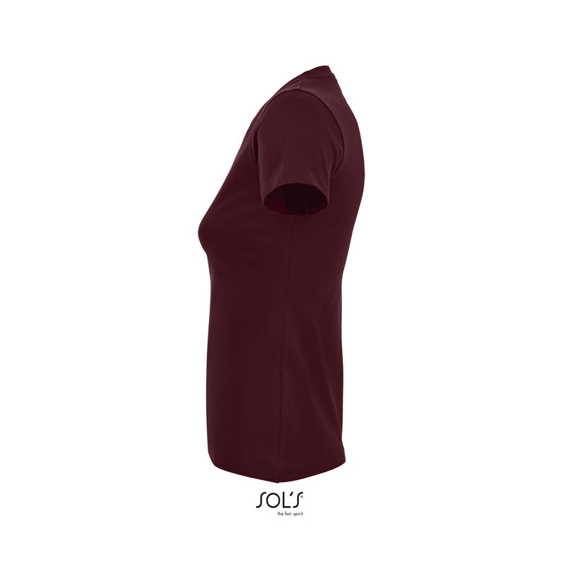SOL'S IMPERIAL T-shirt SENHORA 190g / m². A Imperial para mulher tornou-se a t-shirt de referência de 190 gr / m², graças aos seus acabamentos, à sua qualidade, às suas 25 cores, aos seus 12 tamanhos. 100% semi algodão ringpun penteado, fita reforçada na gola, gola com acabamento canelado, mangas curtas, costuras laterais.