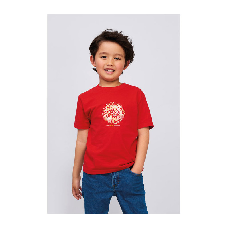 SOL'S IMPERIAL KIDS, t-shirt para criança com gola redonda, 100% algodão jersey 190 extra macio, gola com fita adesiva, gola canelada com elastano, manga curta, corte e costura (2-6 anos) ou tubular (a partir dos 8 anos). Para saber os tamanhos a combinar, consulte a tabela de tamanhos na secção de documentação do produto.