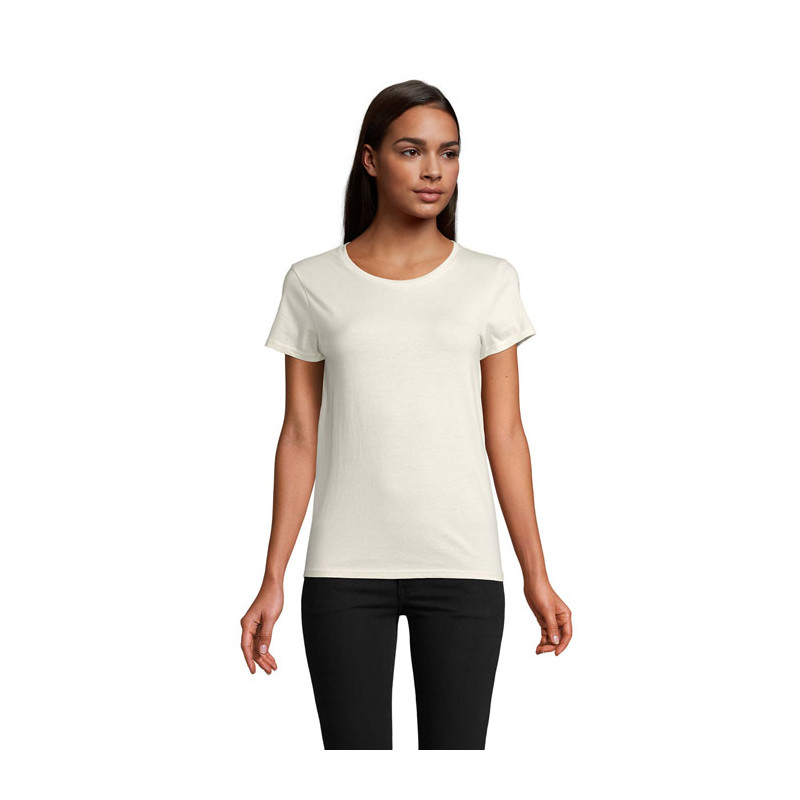 SOL'S PIONEER WOMEN, SENHORA,T-Shirt de gola redonda em jersey, 100% algodão orgânico, acabamento natural para uma sensação mais suave e macia, Jersey 175, gola com nervuras 100% algodão, gola redonda, fita para o pescoço, corte justo, tubular, (1) cinza: 98% algodão orgânico / 2% viscose, (2) cinzento melange: 85% algodão orgânico / 15% viscose. Sobre a correspondência de tamanhos, consulte a tabela de tamanhos na secção de documentação do produto.