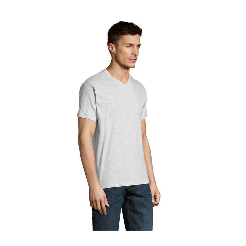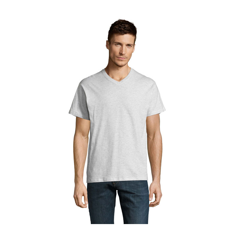 SOL'S VICTORY, t-shirt de homem com decote em V, 100% algodão jersey 150, fita de reforço no pescoço, mangas curtas, 2 espessuras de canelado na gola, tubular, (1) cinza: 98 % algodão / 2 % viscose, (2) cinzento melange: 85 % algodão / 15 % viscose. Para saber os tamanhos correspondentes, consulte a tabela de tamanhos na secção de documentação do produto.