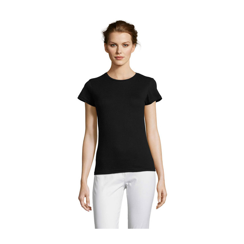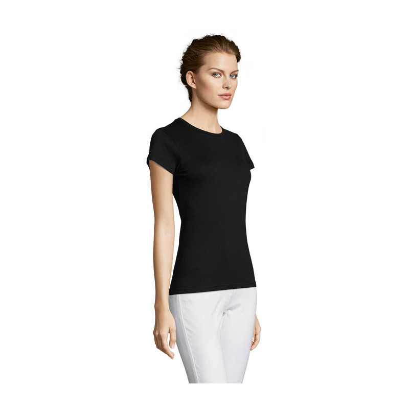 SOL'S MISS T-shirt SENHORA 150g/m², O seu acabamento, a sua gola e a sua vasta gama de cores fazem com que esta peça se destaque da concorrência, 100% algodão semi-penteado ringpun, costura reforçada no pescoço, decote em malha lisa, mangas curtas, corte justo, decote slim, costuras laterais .