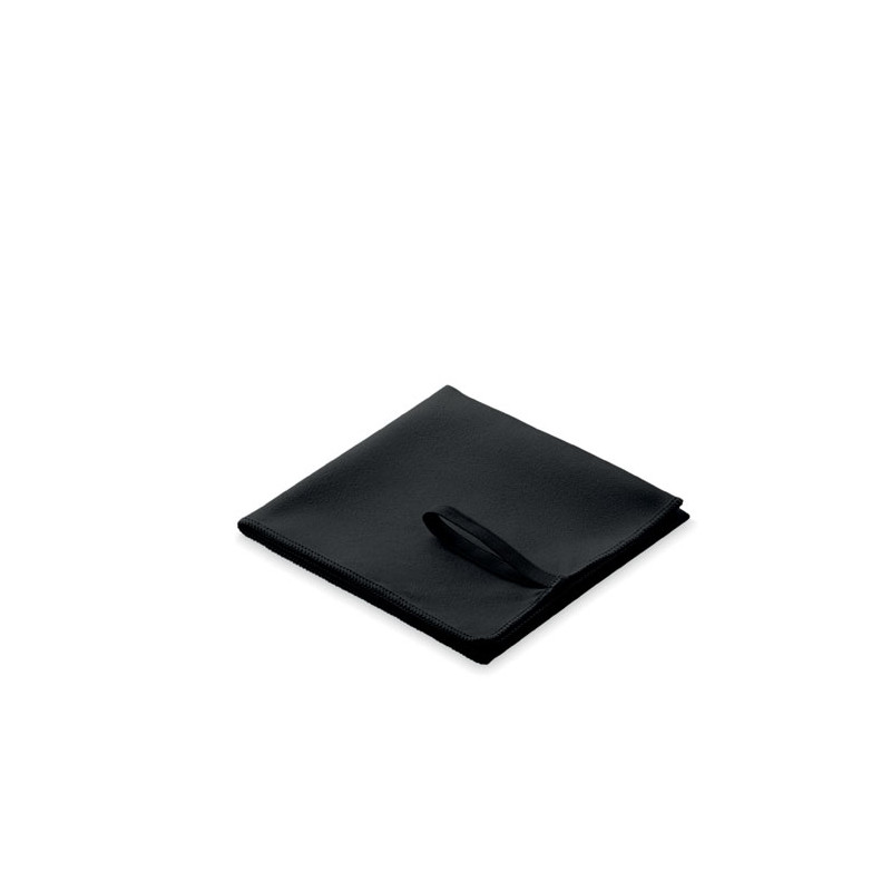 Toalha de microfibra com alta capacidade de absorção e secagem rápida. A solução compacta para criar brindes personalizados desportivos e de bem-estar.