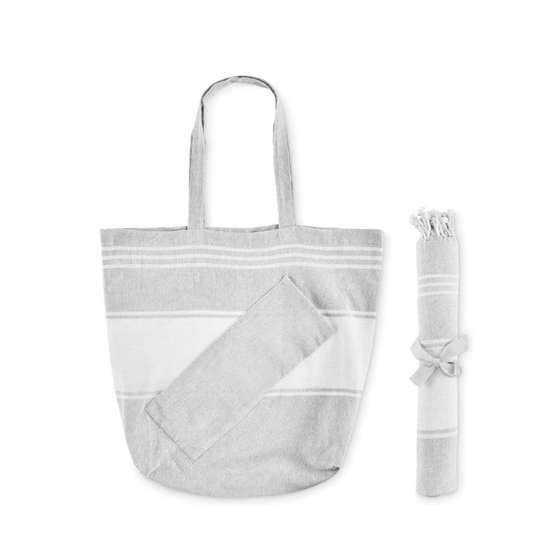 Conjunto de toalha de praia hammam com saco de praia. 70% algodão e 30% poliéster 180 gr/m².
