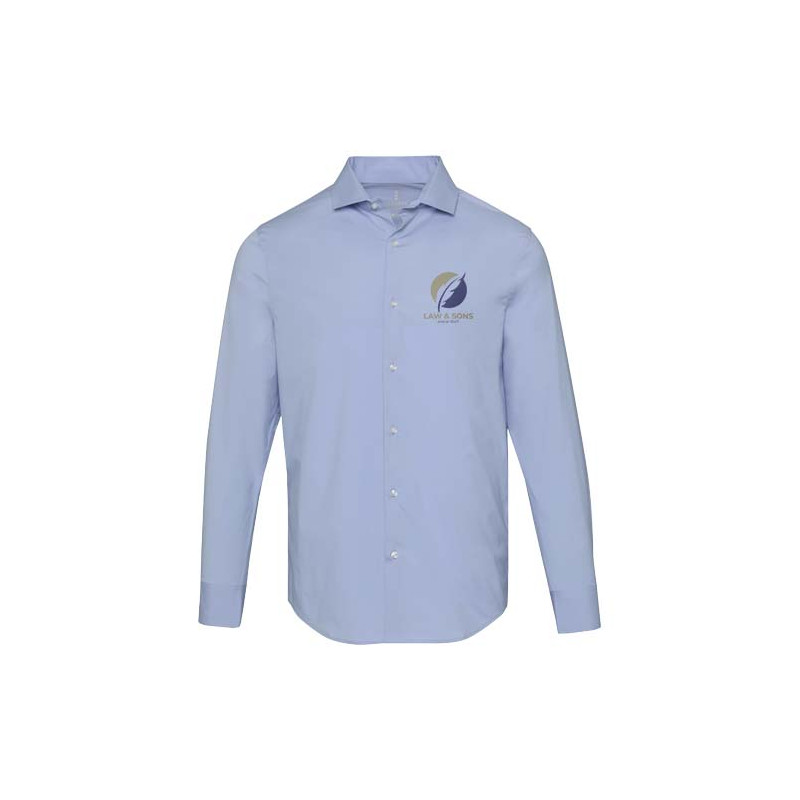 Camisa de popelina stretch com toque luxuoso e ajuste regular. O brinde personalizado publicitário de prestígio para um visual profissional e elegante.