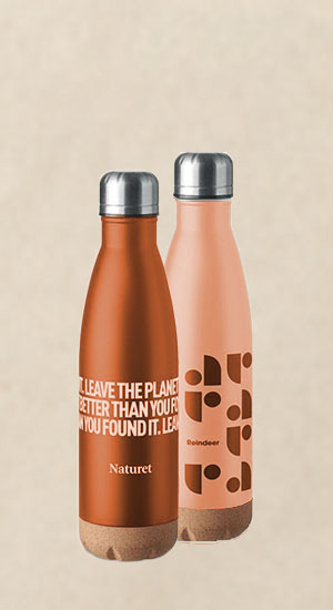 Garrafa em aço inoxidável reciclado, com design sustentável e durável. Ideal para o uso diário ou como brinde corporativo ecológico.